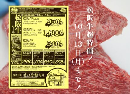 10/10〜13の四日間は秋の大大大松阪牛特売🔥🍖