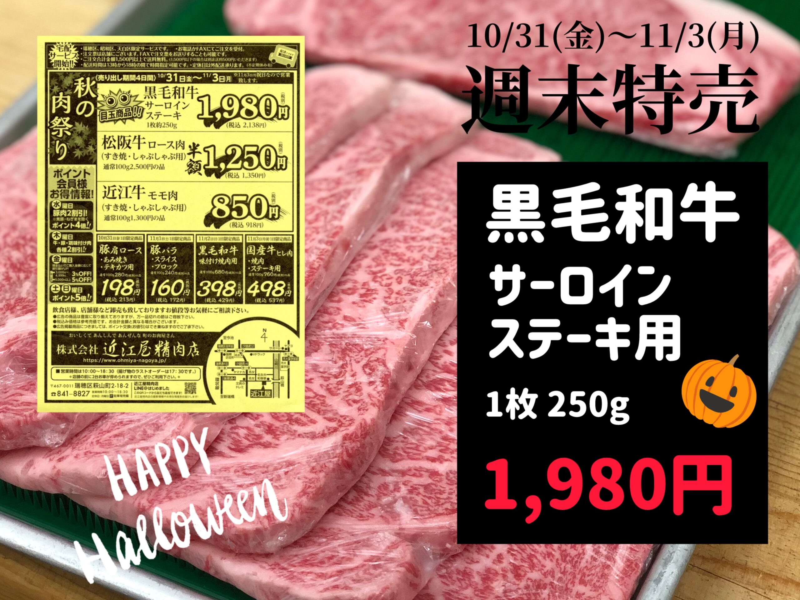 松阪牛ロース肉も 半 額 🎉‼️‼️ハッピーハロウィンセール開催中🎃