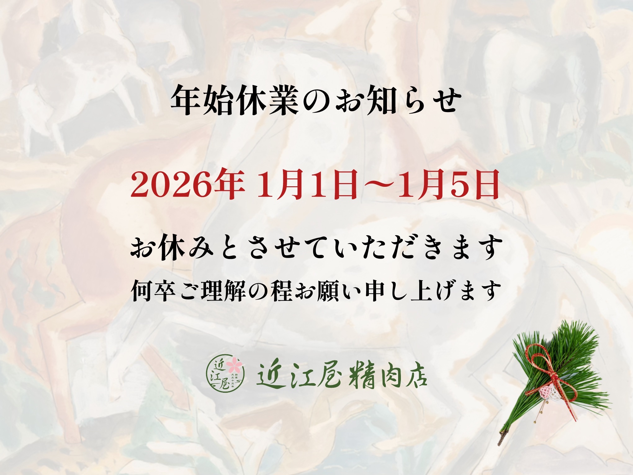 1/1〜1/5 年始休業のお知らせ 2025.12.25お知らせ 2026年1月1日〜5日まで、年始休業となります。 2025年は12月31日まで営業しております。 ご不便をおかけいたしますが、何卒ご理解のほどお願い申し上げます。 ◀︎ お知らせ一覧へ カテゴリー 全記事 お知らせ レシピ チラシ お買得情報 営業日カレンダー